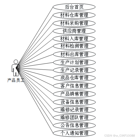 产品员工在功能模块上与生产员工有相似之处,但功能的执行权限有所不同,重点在于对产品的生产、质量控制等环节的参与。