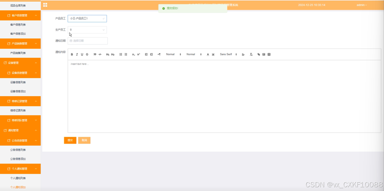 通知管理:与生产员工相同,产品员工也能查看系统公告和个人通知,保持与团队和生产任务的协调。