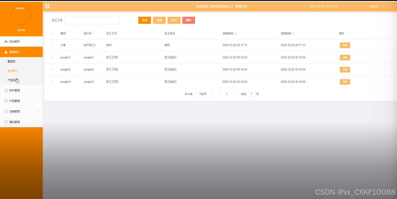 系统用户管理:管理员能够管理所有系统用户,包括生产员工、产品员工等,进行权限分配、账号管理等操作。