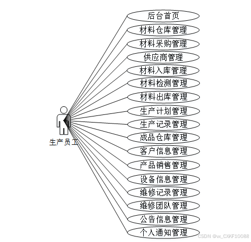 对于生产员工和产品员工,系统提供材料管理、产品管理、设备管理和通知管理等功能,确保生产流程的顺畅和物料的及时供应。管理员则拥有更高权限,除了以上功能外,还具备用户管理、物流管理、生产运行管理等功能,实现对整个生产和运营过程的全方位监控与优化。通过预警提醒、审批流程、数据统计等手段,系统不仅提高了各类资源的使用效率,还确保了生产过程中的数据安全和质量控制。
