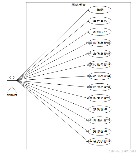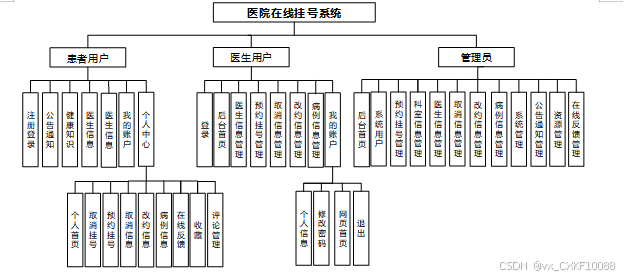 本系统可以分为:患者用户、医生用户和管理员三大角色。