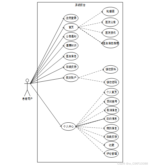 系统前台患者用户具体功能说明如下所示。
