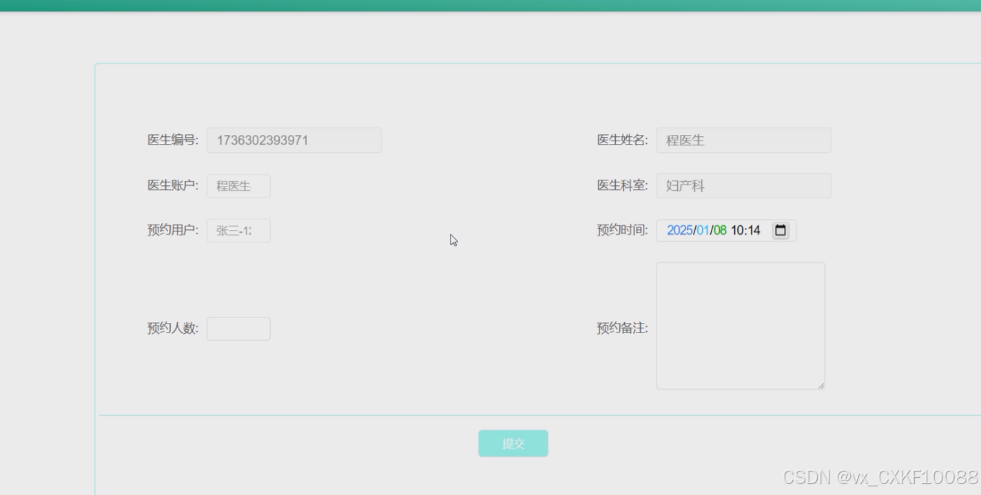 1. 进入预约挂号模块<br>2. 查看已提交的预约记录 |