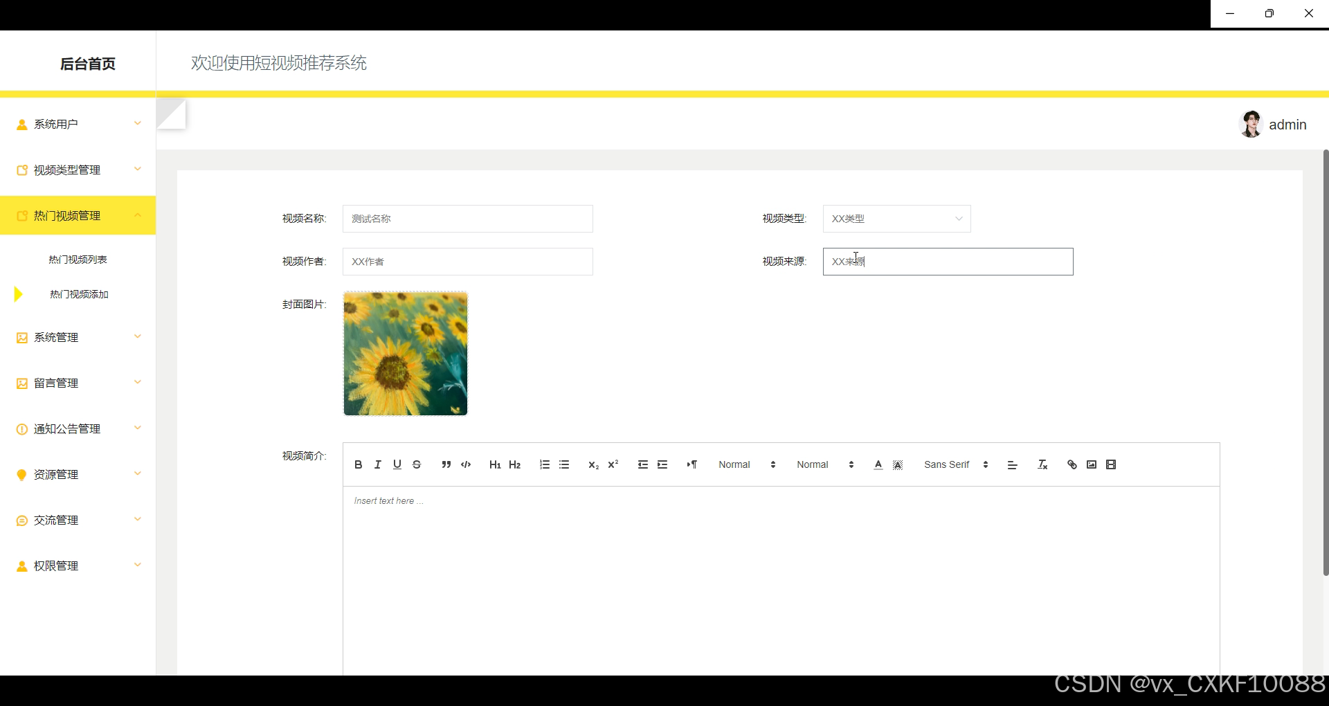 视频资讯管理:管理员负责编辑、更新与删除视频行业资讯内容,确保平台上的信息新鲜、精准,并及时向用户推送。