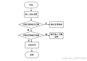 在用户注册页面,用户顺序输入个人信息(手机号/邮箱等),然后点击“注册”按钮。系统验证用户输入的有效性,成功后创建账户并跳转至平台首页。若信息不符合要求,则提示用户修改。流程图如下所示: