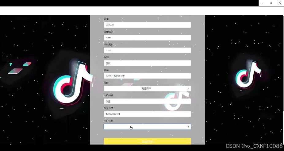 | 1 | 用户注册 | 输入正确的用户名和密码 | 注册成功,提示注册完成 |