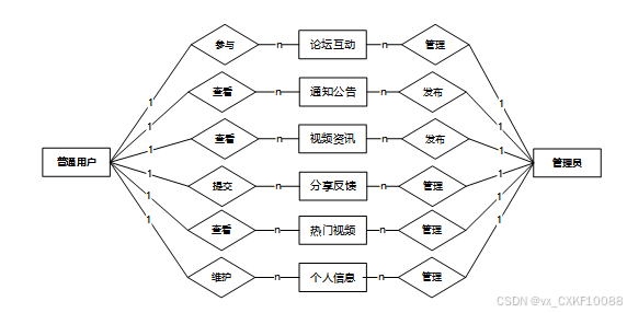 系统主要包括普通用户和管理员两大功能模块。普通用户通过首页轮播图、视频资讯、热门视频推荐、论坛互动等功能,能够获得个性化的观看体验,并能分享视频、提供反馈、管理个人信息等。而管理员则拥有强大的后台管理功能,能够管理用户、视频、评论、公告等,确保平台内容的质量与合规性。