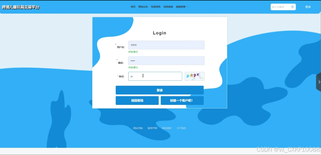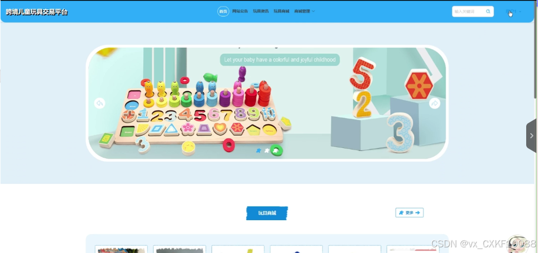 django跨境儿童玩具交易平台功能方面,注册用户模块功能包括注册登录、首页、玩具资讯、网站公告、玩具商城、个人中心、我的账户;管理员模块功能包括后台首页、系统用户、玩具资讯管理、预约记录管理、系统管理、网站公告管理、资源管理。具体如下: