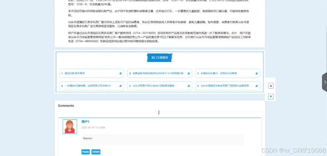 (3)玩具资讯:django跨境儿童玩具交易平台呈现玩具资讯列表,注册用户在浏览玩具资讯时可以评论、收藏、点赞。