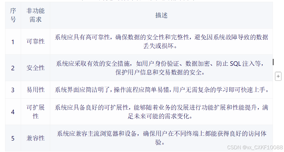 表3-1django跨境儿童玩具交易平台非功能需求表