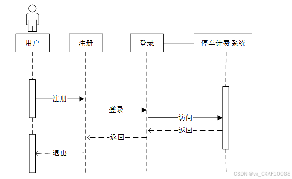 用户通过注册模块发送注册请求,系统完成注册后返回确认信息。随后,用户通过登录模块发送登录请求,系统验证用户信息后允许访问目标系统。用户完成操作后可选择退出,系统终止会话。注册时序图,如图4-3所示。