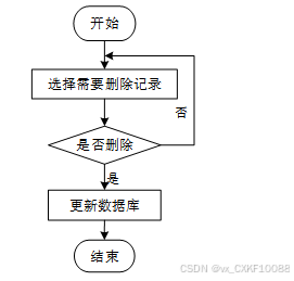 用户选择需要删除的记录后,系统判断是否确认删除。若未确认,返回选择环节;若确认删除,则更新数据库,删除对应记录,完成操作后流程结束。删除信息流程图如图3-8所示。