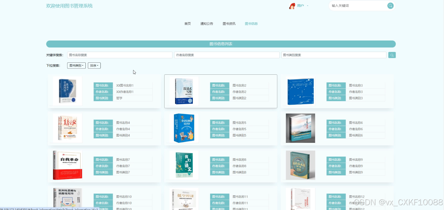 - 图书资讯:用户可以浏览图书资讯,了解新书上架、热门图书推荐等信息。此模块还支持用户对感兴趣的图书进行点赞、收藏和评论。