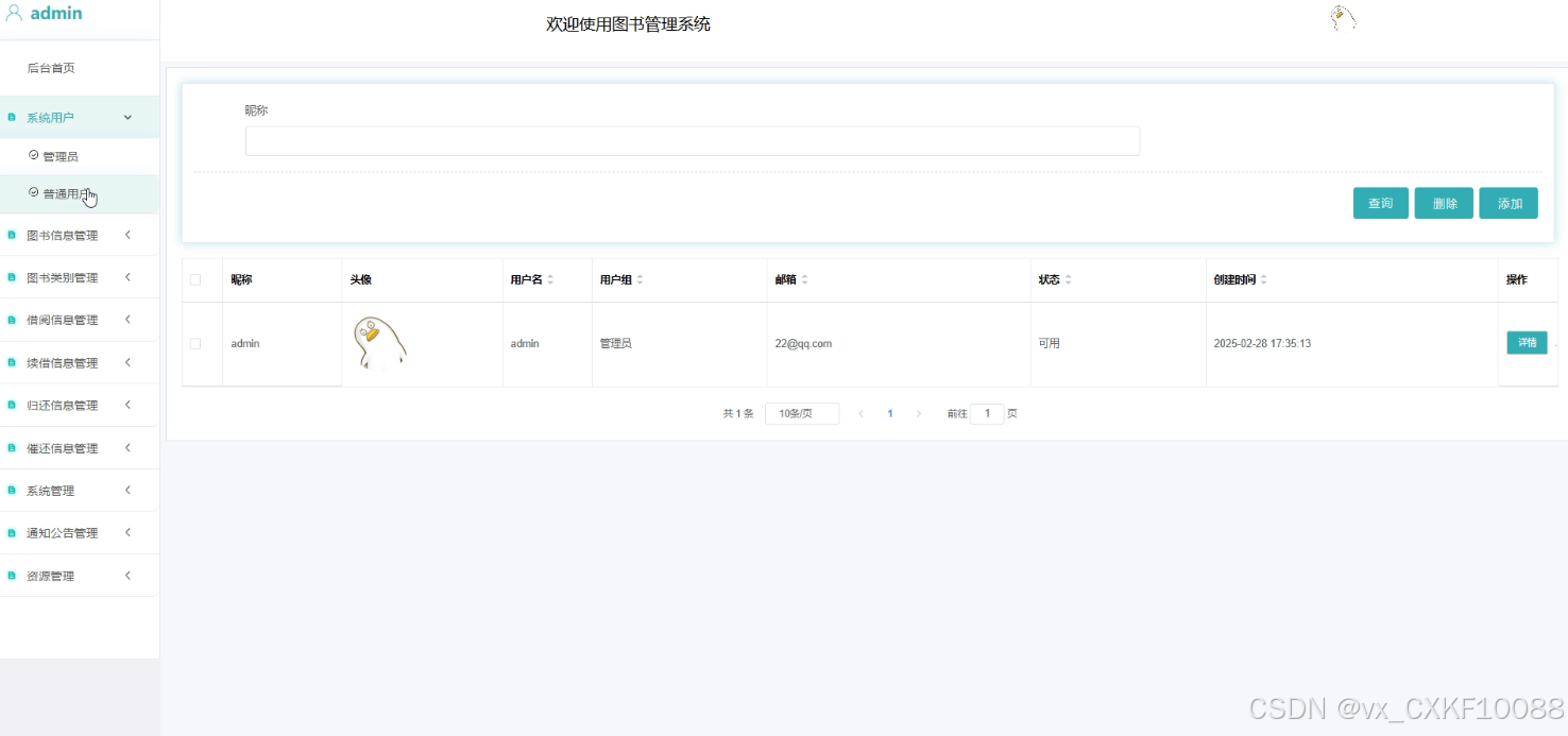 - 续借信息管理:续借信息管理功能允许管理员处理用户的续借请求。管理员可以删除或查询续借记录,查看续借详情,并对续借请求进行审核。通过这一功能,管理员可以确保图书资源的合理分配和高效利用。