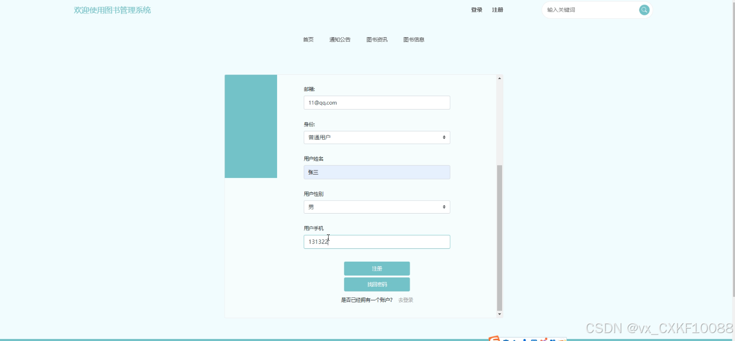 - 注册登陆:用户可以通过注册功能创建新账户,输入必要的个人信息和凭证。登录功能允许用户使用已注册的凭证访问系统,进行图书查询、借阅等操作。