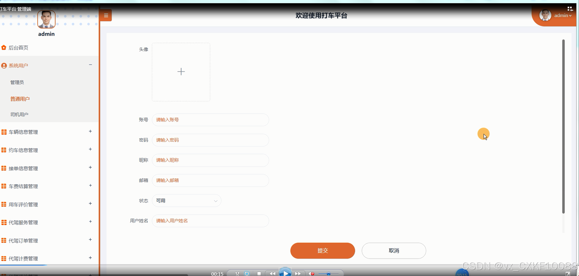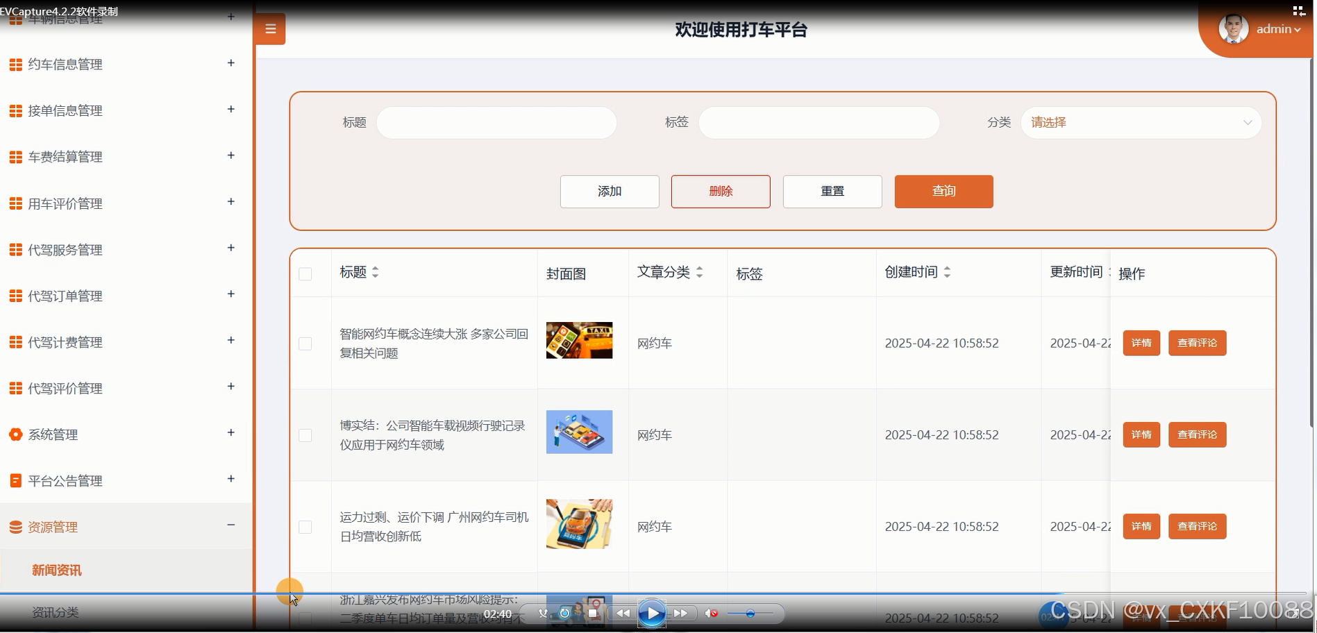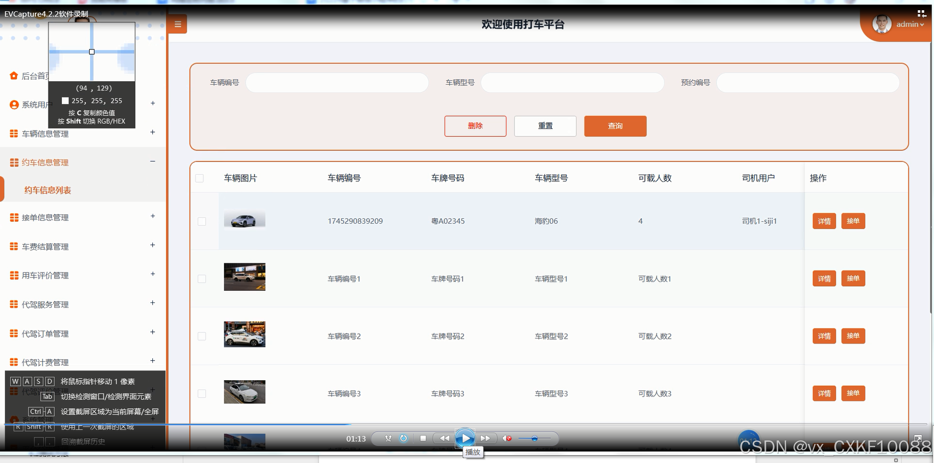 图5-9约车信息管理界面