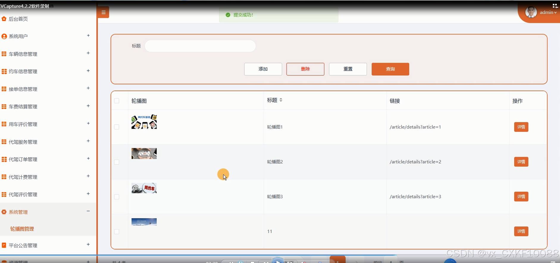 管理员点击“系统管理-轮播图管理”菜单,可以对前台展示的轮播图进行设置,系统管理界面如图5-10所示。