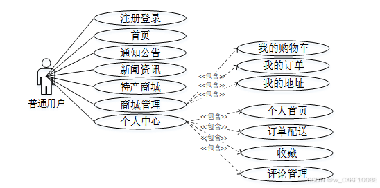 贵州特产商城管理系统普通用户角色用例图如下图 3-1所示。