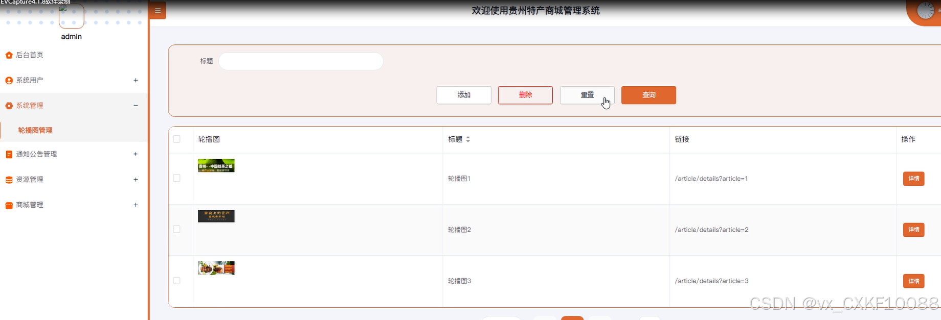 系统管理:配置首页轮播图内容,支持图片上传和链接设置。