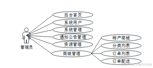 贵州特产商城管理系统管理员角色用例图如下图 3-2所示。