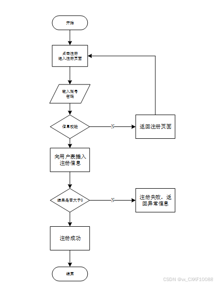 注册的过程,第一部分是账号的注册,第二部分是信息完善。在业务开展过程中,管理员可对用户信息进行修改等管理操作,注册流程如图 3-3所示。