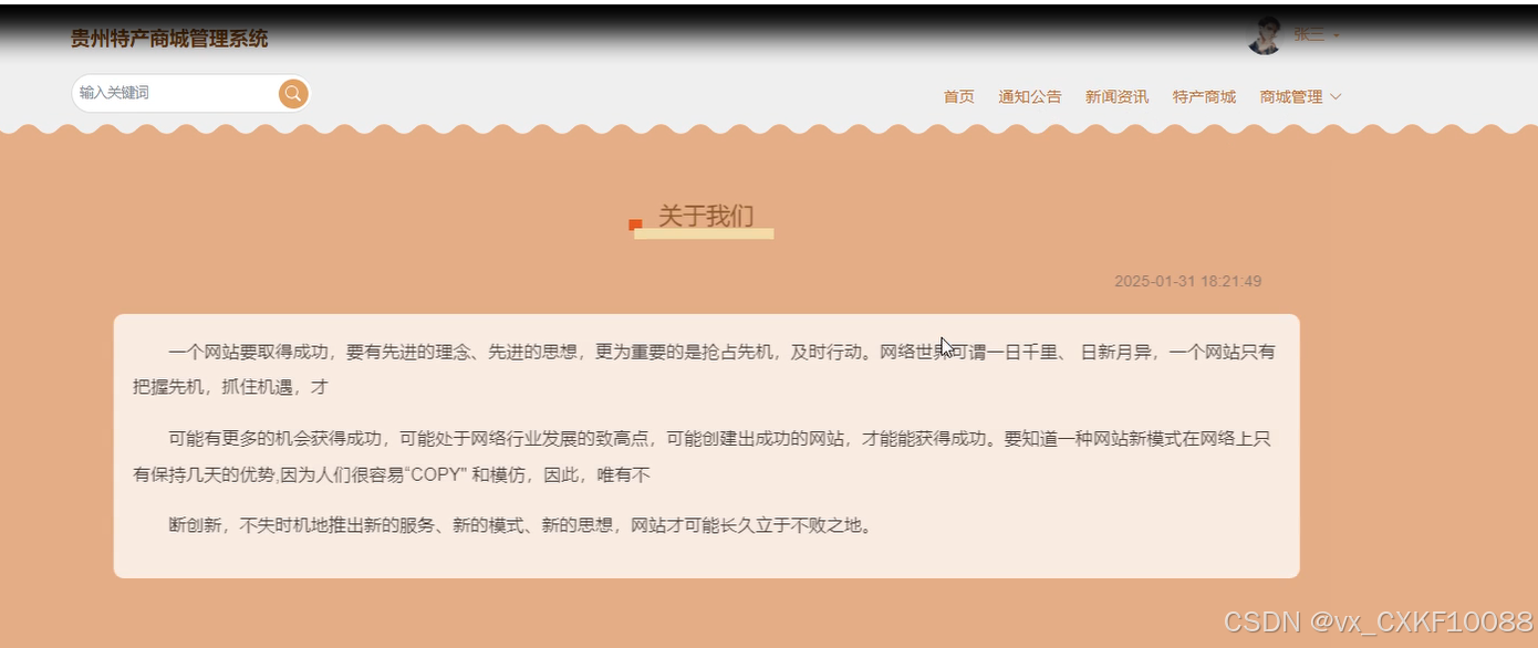 Keywords:Guizhou specialty mall management system; Java language; SSM framework; MySQL database.