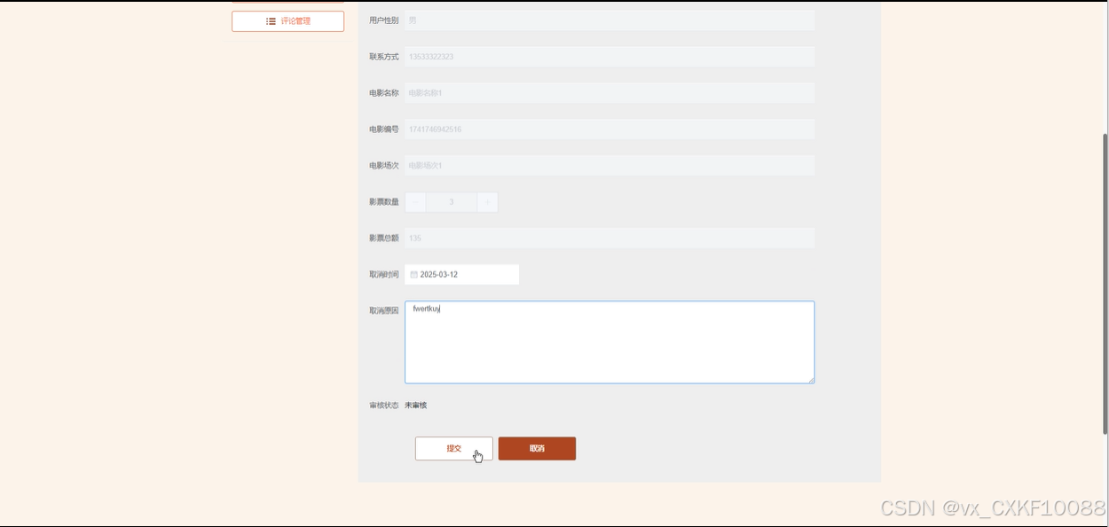 在线购票:用户可以查看电影的购票详情,包括票价、影院信息、上映时间等。用户可以通过平台进行购票支付,同时支持查询已购票的订单信息。用户还可以选择重置查询条件、删除订单记录,且如果购票审核通过后,用户可进行订单的取消操作。