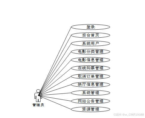 图 3-2电影购票系统管理员角色用例图