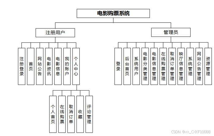 电影购票系统划分为了前端模块和后端模块两大部分。