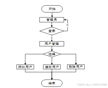 管理员能够查看所有系统用户的详细信息,包括注册用户和管理员账户。管理员有权限对用户账户进行增、删、改、查等操作,能够有效管理平台的用户信息。用户管理流程图如下所示。