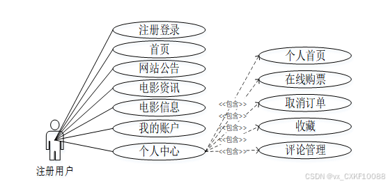 图 3-1电影购票系统注册用户角色用例图