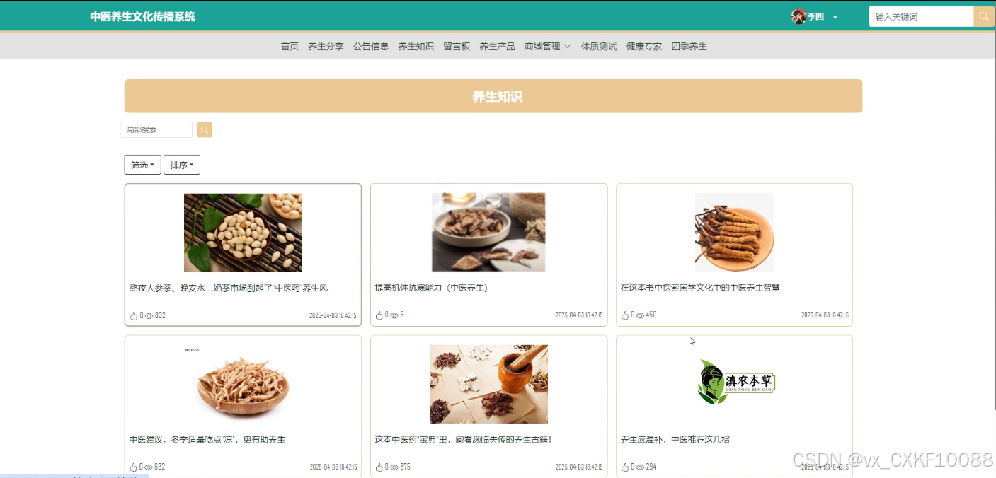 - 养生知识:用户可以浏览各种养生知识文章,并对喜欢的内容进行点赞、收藏和评论。平台提供丰富的养生知识,帮助用户更好地了解如何保持健康。