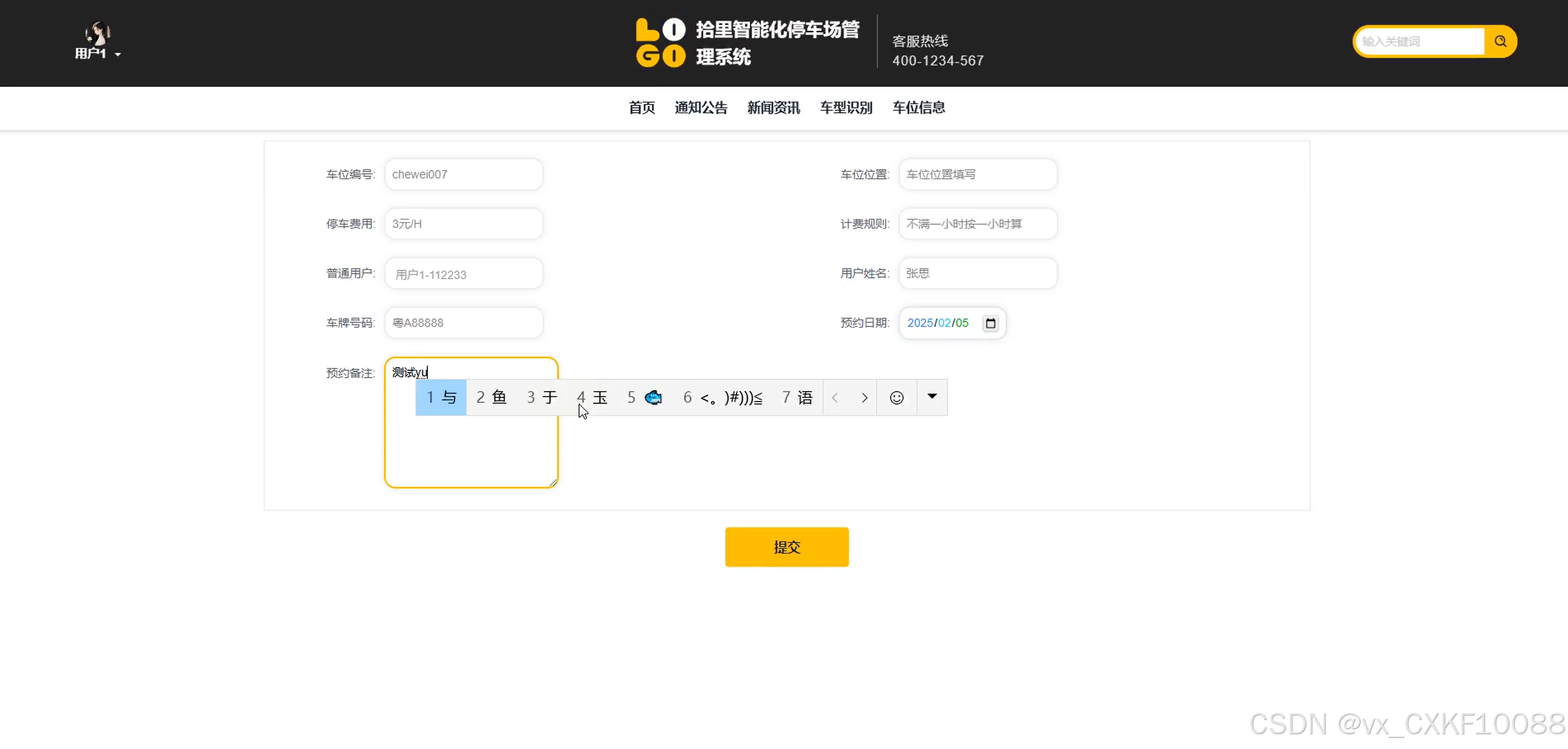 图5-4预约车位信息界面图