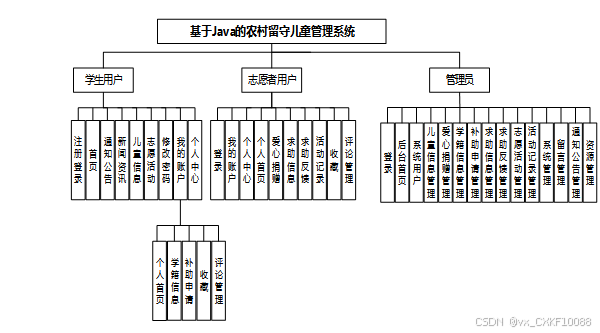 农村留守儿童管理系统划分为了前端模块和后端模块两大部分。