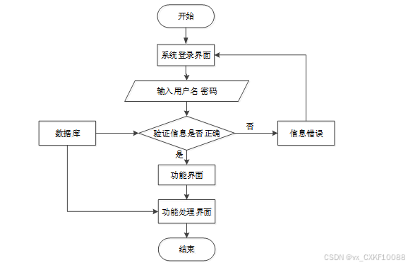用户访问平台的网站,进入登录页面页面,输入其用户名和密码,后端服务接收登录请求,验证用户提供的用户名和密码是否匹配数据库中存储的信息,验证通过即可登录成功。登录流程图如下图所示。