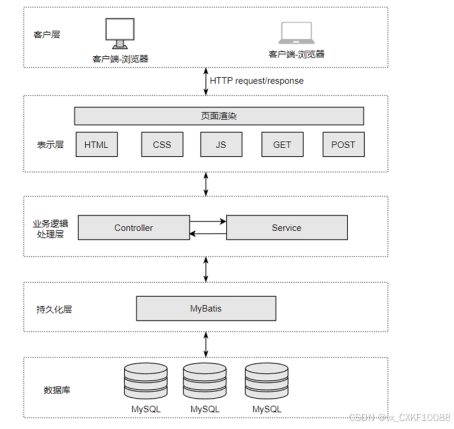 B/S(Browser/Server)架构是一种基于浏览器和服务器的应用架构模式。它以Web浏览器作为客户端,服务器端通过Web技术提供应用服务。客户端通过浏览器与服务器进行交互,用户无需安装专门的客户端应用程序,只需要通过互联网连接即可访问应用程序[1]。在B/S架构中,客户端主要承担用户界面的呈现和基本的输入输出功能,而核心的业务处理、数据存储等操作则由服务器端完成。这种架构的核心优势在于无需在每个客户端机器上安装或更新软件,只要用户的浏览器符合要求,就可以使用系统。
