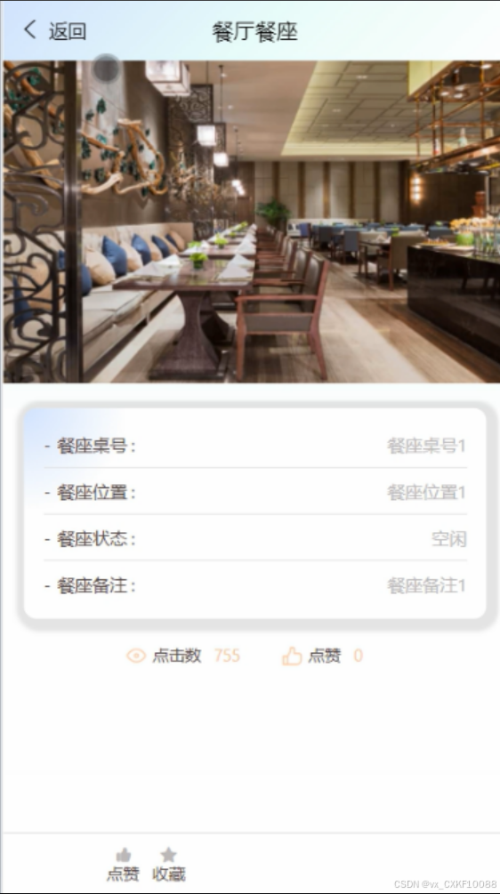 允许用户在线预订餐厅座位,避免排队等待,享受便捷就餐安排。餐厅餐座界面如图5-4所示。