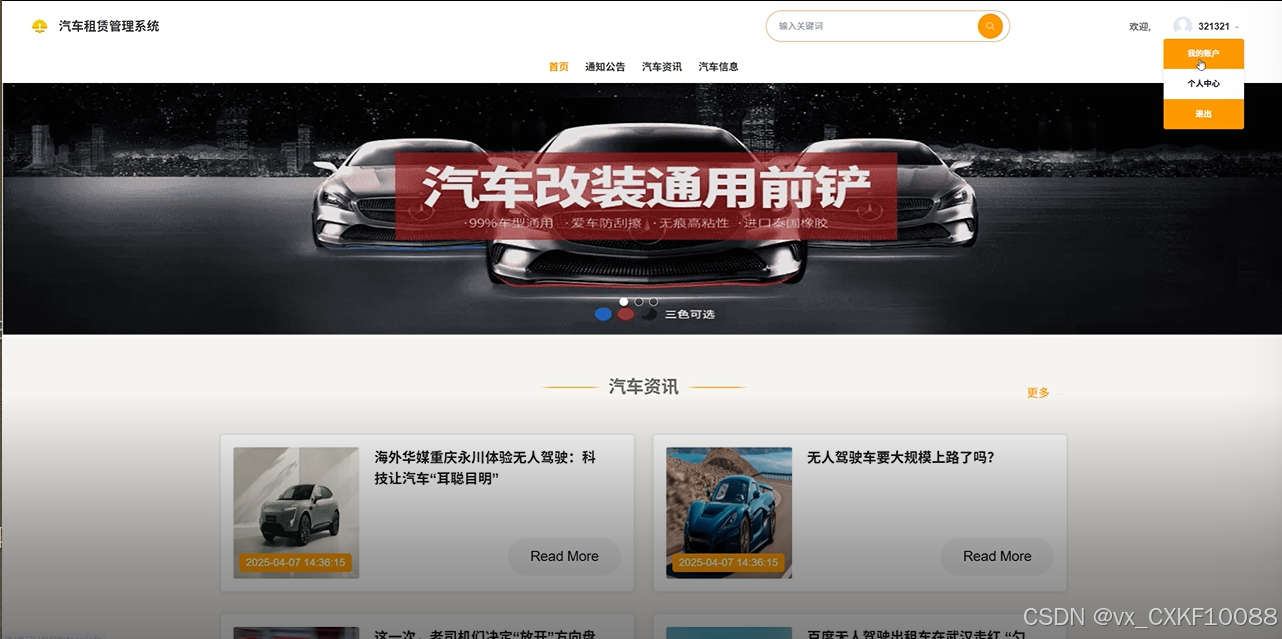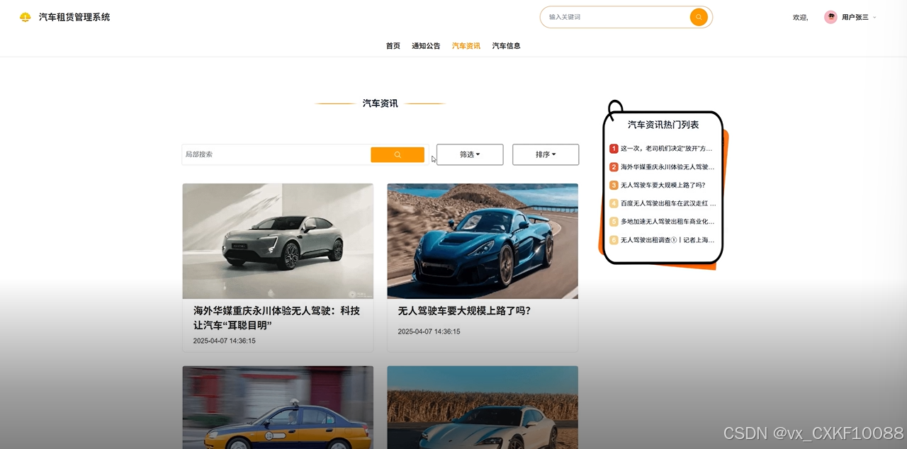 汽车资讯:用户可以在系统中浏览与汽车租赁相关的资讯,如汽车市场动态、车型推荐、租赁技巧等。