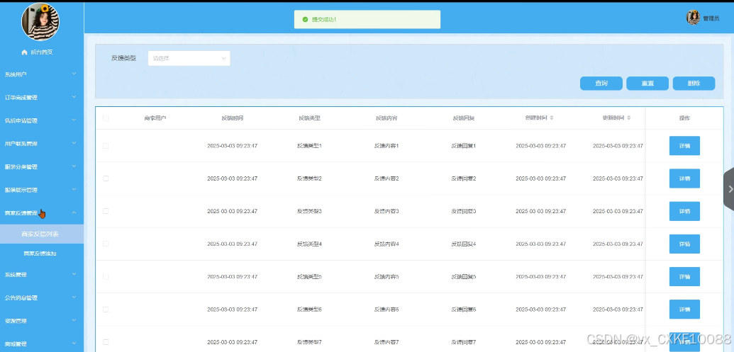 商家反馈管理:管理员可以查看、编辑商家反馈列表,也可以添加新的商家反馈信息。
