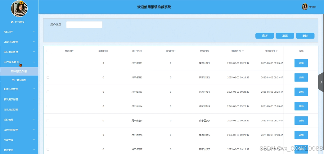 用户联系管理:管理员可以查看、编辑用户联系列表,也可以添加新的用户联系信息。