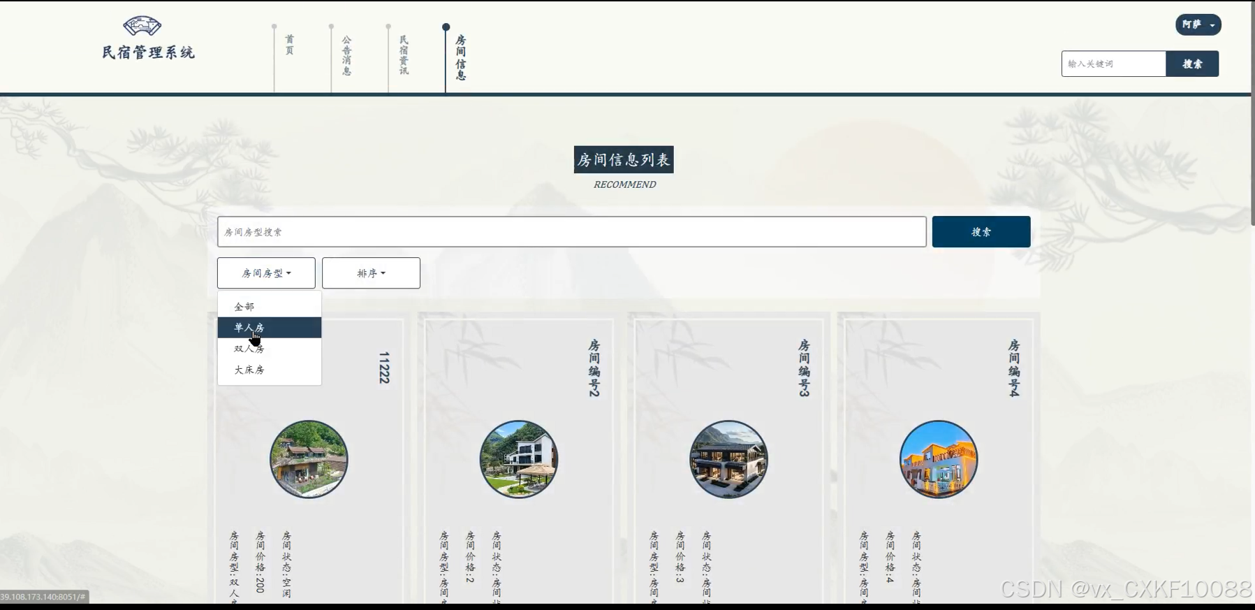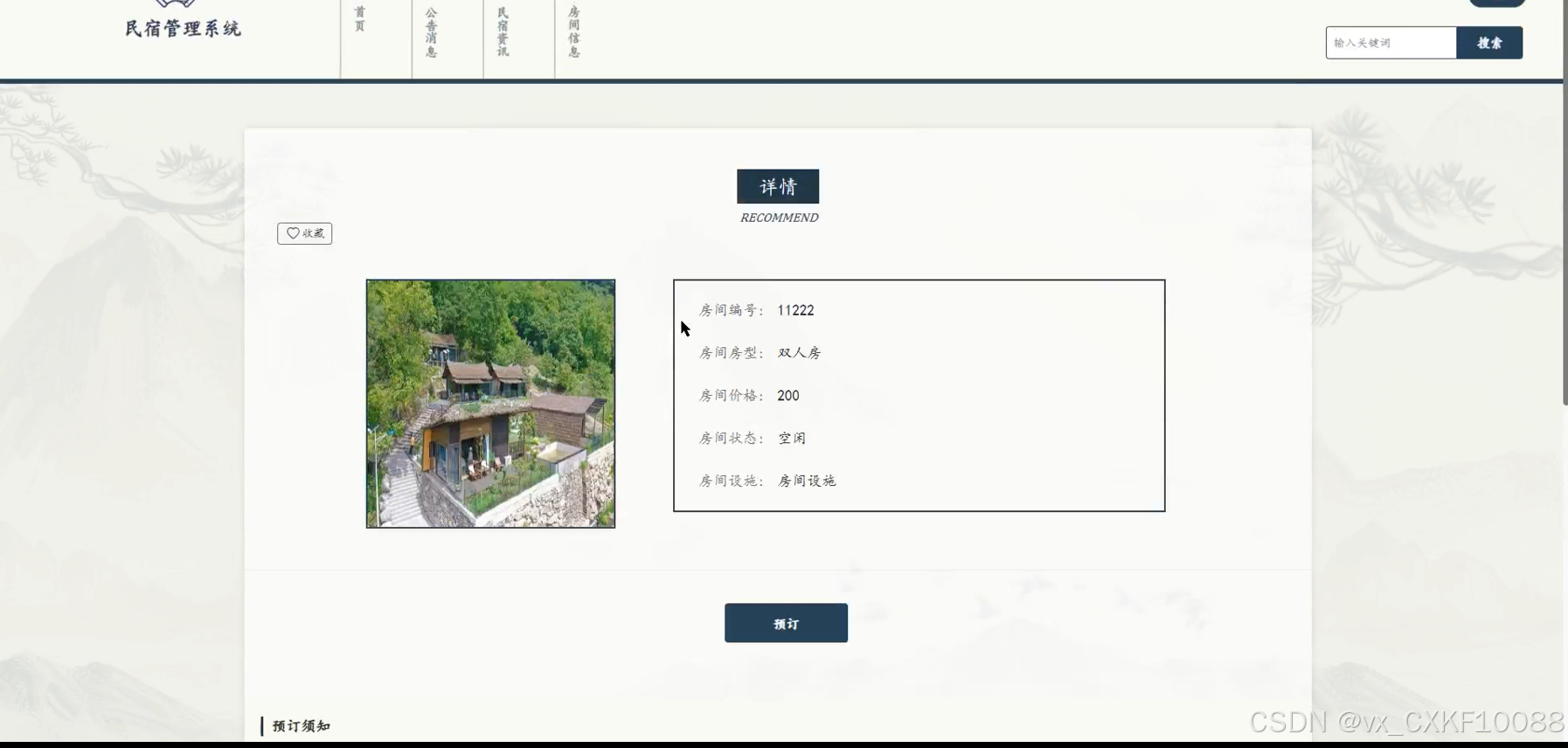 - 房间信息:展示各类房间的详细信息,如房间类型、价格、设施等,用户可以浏览并选择合适的房间。