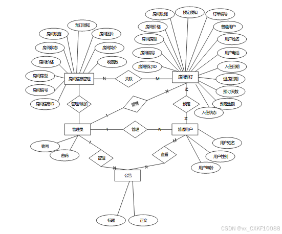 - 房间信息管理:管理员可以增、删、改房间信息,包括房型、价格、设施等。