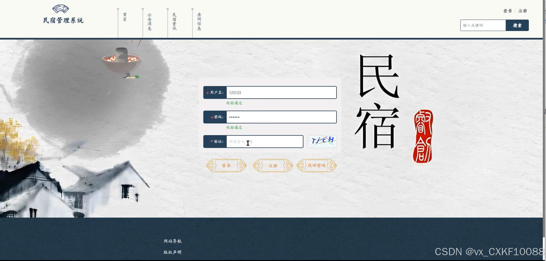 | 普通用户 | 打开首页,浏览公告信息和民宿资讯 | 无 | 符合预期 |