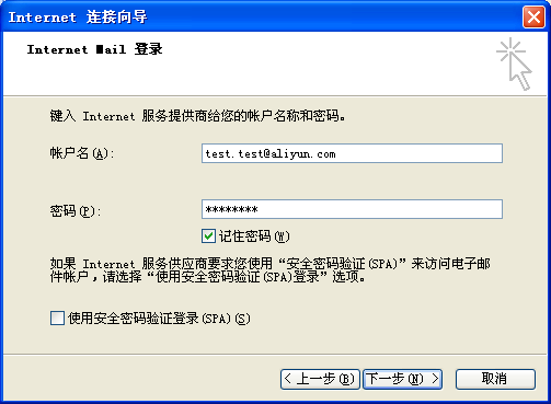 test01@aliyun.com); - “密码”:输入你的阿里云邮箱登录密码(如图 6 所示,输入框旁有 “记住密码” 选项,可根据需求勾选)。
