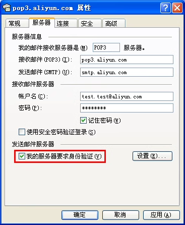 在弹出的 “pop3.aliyun.com 属性” 窗口中: