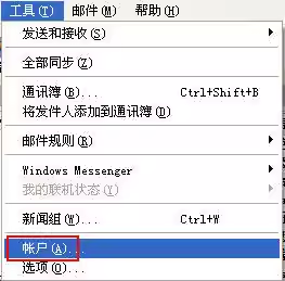 启动 Outlook Express 后,点击顶部菜单栏的【工具】,在弹出的下拉菜单中选择【帐户】。此时会弹出 “Internet 帐户” 管理窗口(如图 1 所示,窗口中会显示已添加的邮件账户,首次配置时为空)。