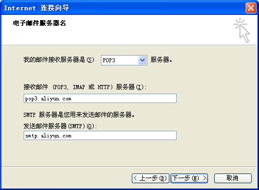 pop3.aliyun.com; - 在 “发送邮件服务器” 输入框中填写