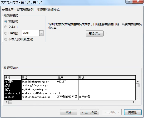 步骤 4:设置列数据格式为 “常规”
