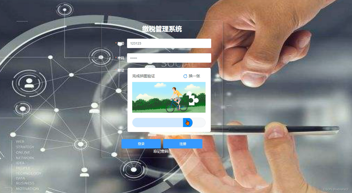 用户登录,用户通过输入用户名,密码,验证码等信息进入缴税管理系统,如图5-8所示。