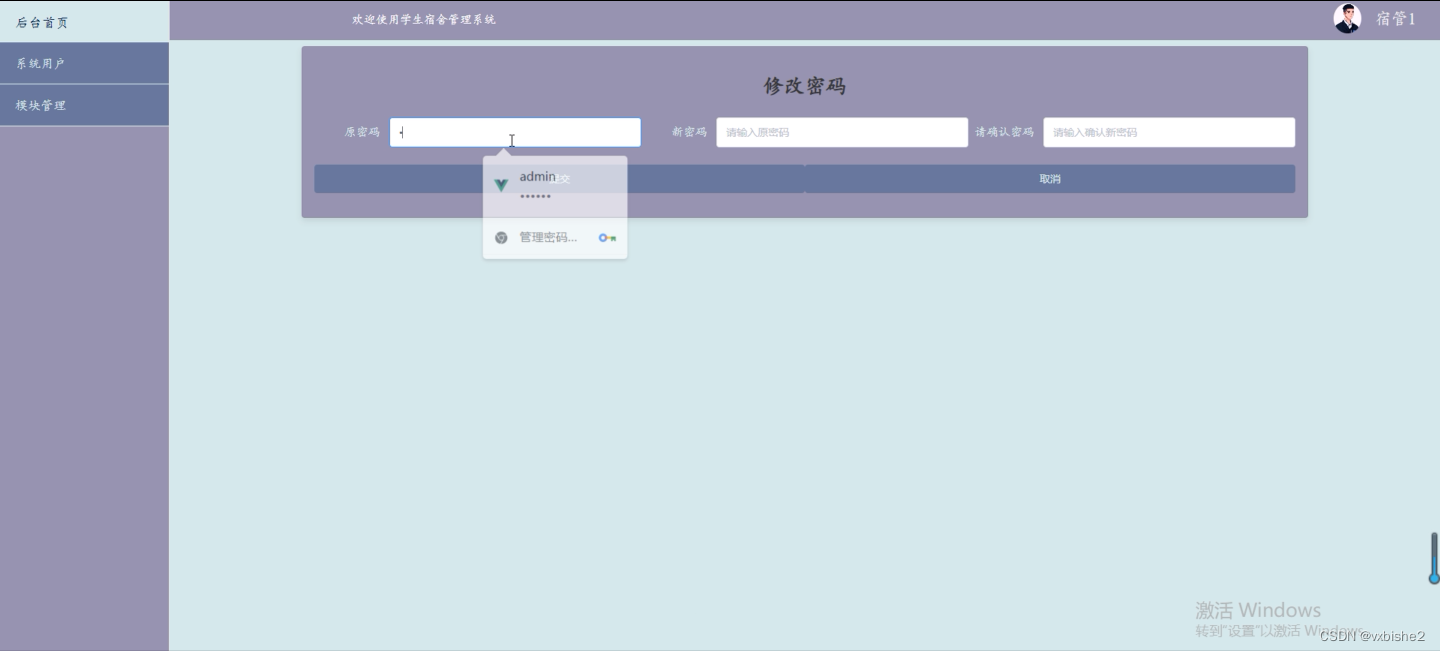 | 修改密码模块 | 原密码:admin 新密码:123 确认密码:123 | 密码修改成功 | 密码修改成功 | 通过 |